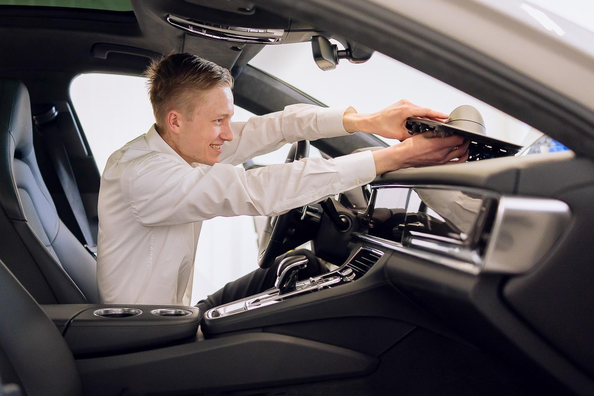 Custom speakerringen, volledig in-house ontworpen, 3D-geprint en gemonteerd in een Porsche Panamera Turbo S.
