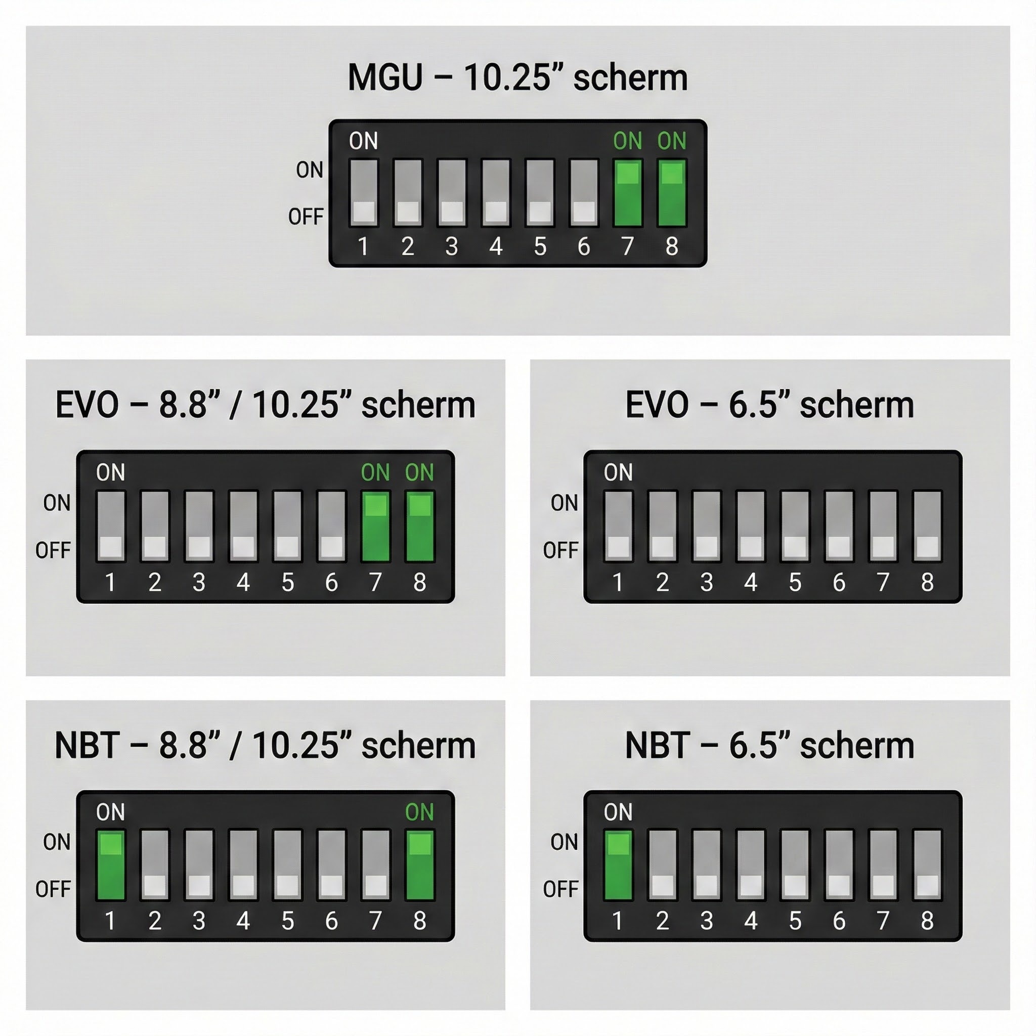 DIP Switch Instellingen per model