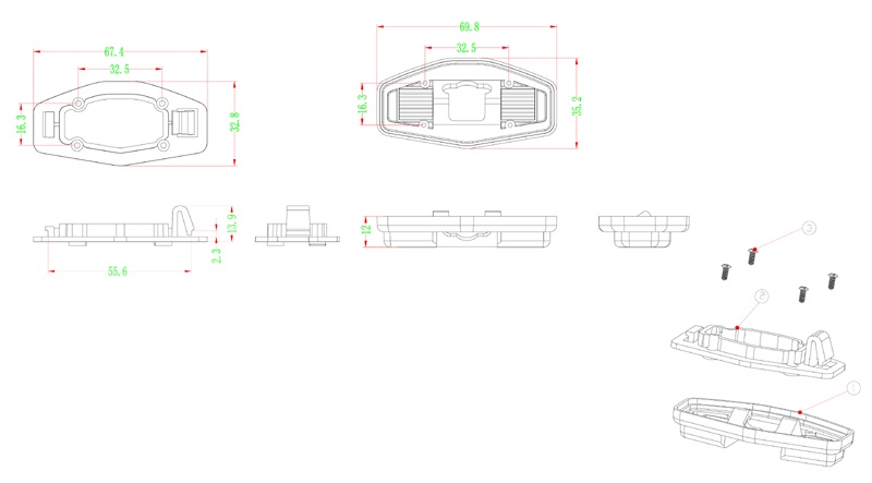 | Kentekenverlichtingsglas | 67,4 x 32,8–20 x 24 mm (B x H x D) |