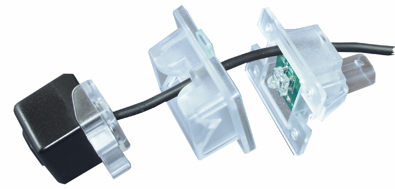 NavLinkz voertuigspecifiek kentekenverlichtingsglas met mini-achteruitrijcamera, ingebouwde LED en uitschakelbare afstandslijnen. Eenvoudige montage door vervanging van het originele fabrieks-kentekenverlichtingsglas. Professionele systeemkabelset met voldoende lengte en automotive stekkerverbindingen. Dankzij de stekker met kleine diameter is de kabel eenvoudiger te leggen. Extra ader voor signaaldoorgifte, bijv. stroomvoorziening of achteruitsignaal.