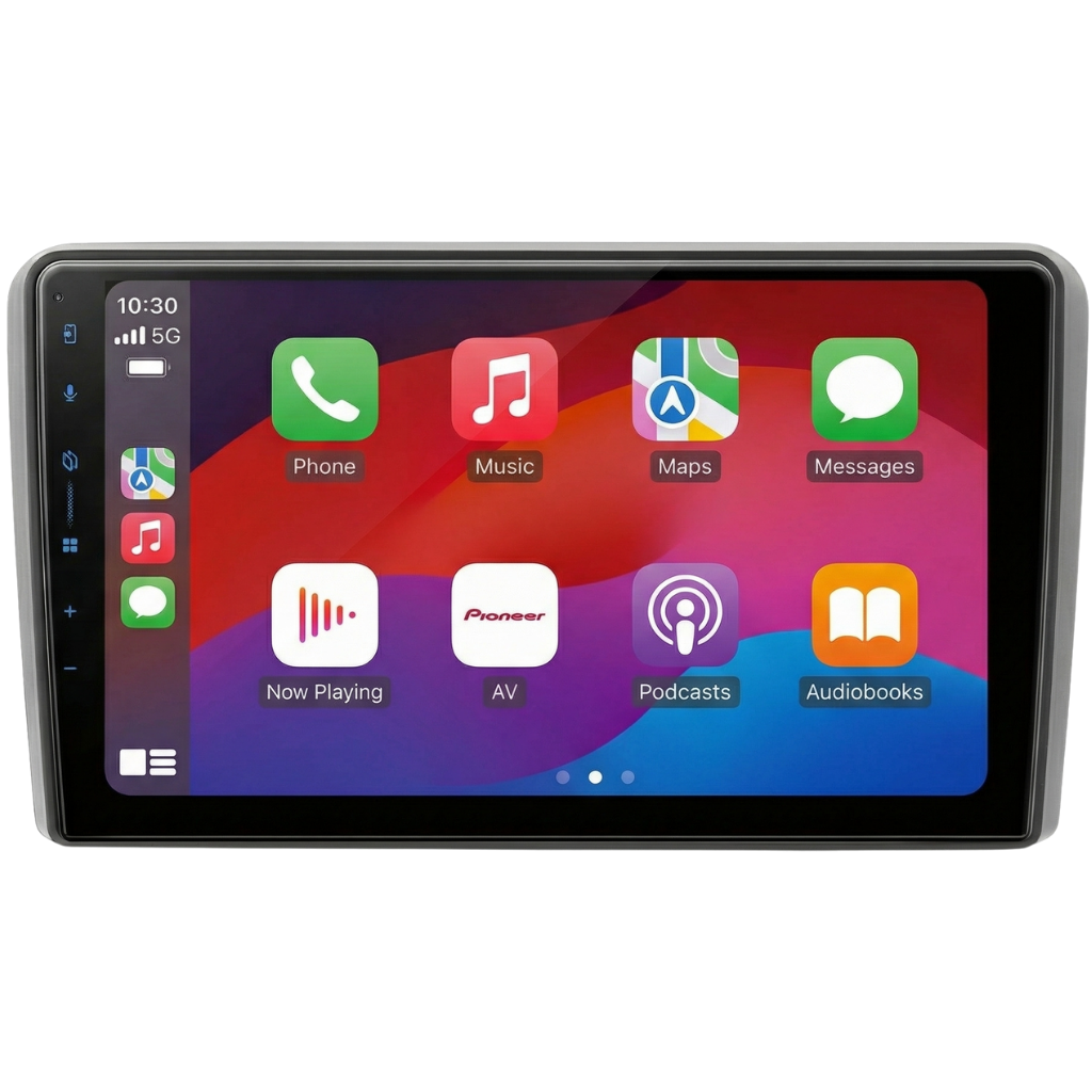 Pioneer SPH-F97BT 9" Multimedia Systeem voor Audi A3 (2003–2012), met ISO–Mini ISO + 40-pins FAKRA connector; compatibel met BOSE 2-kanaals, 4-kanaals BOSE vereist optionele interface; niet compatibel met 1DIN af-fabriek.