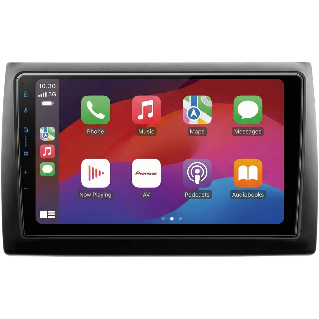 Complete installatiekit, geschikt voor de Fiat Stilo ('01-'07), bestaande uit het 9'' Multimedia Systeem Pioneer SPH-PF97BT, een voertuigspecifiek 9'' Montageframe, inclusief de benodigde bekabeling en stuurwielinterface.