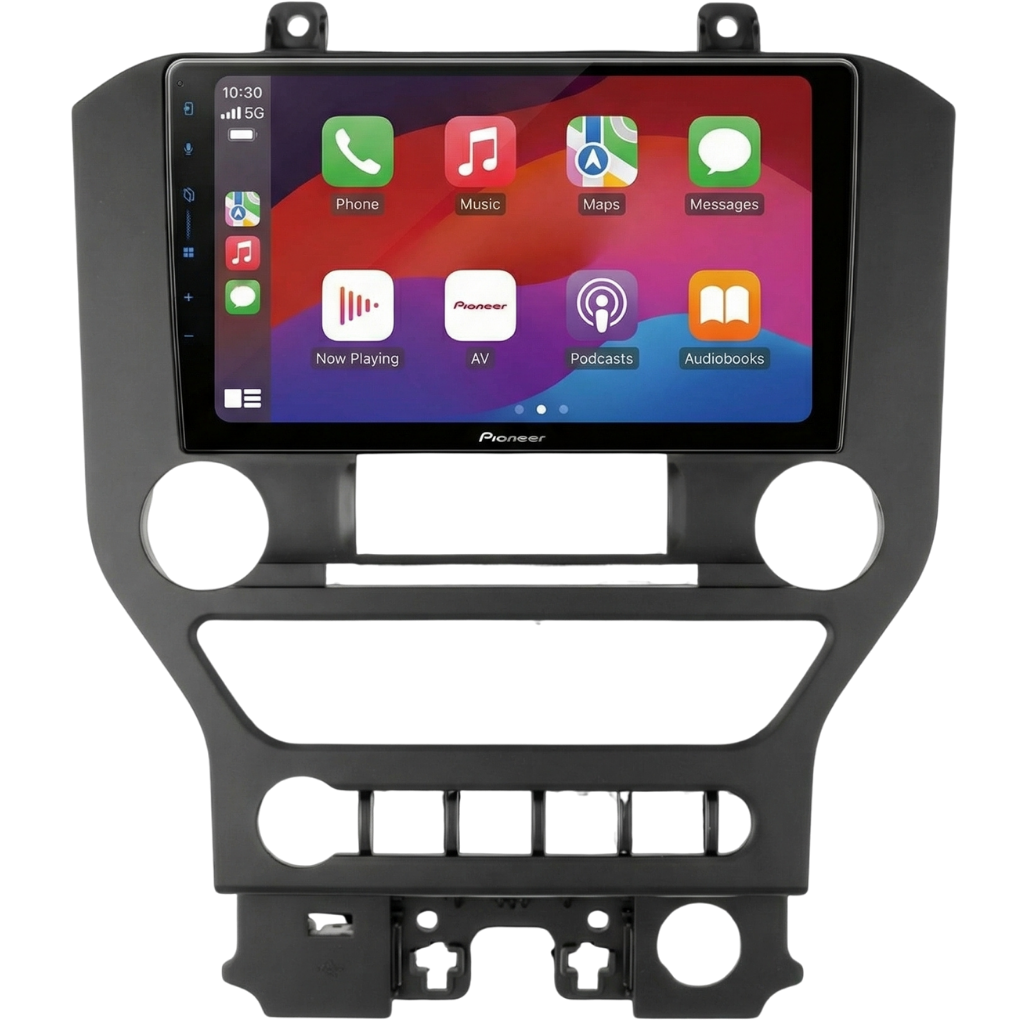 Pioneer SPH-F97BT 9" Multimedia Systeem voor Ford Mustang (2014–2018), zwart, inclusief autospecifieke bekabeling en stuurwielinterface (24-pins connector; voor modellen met 4 knoppen; niet compatibel met 3-knoppen modellen; antenne + USB-adapter inbegrepen; mogelijk geen CarPlay/AA via originele USB; dashboardfoto vereist).