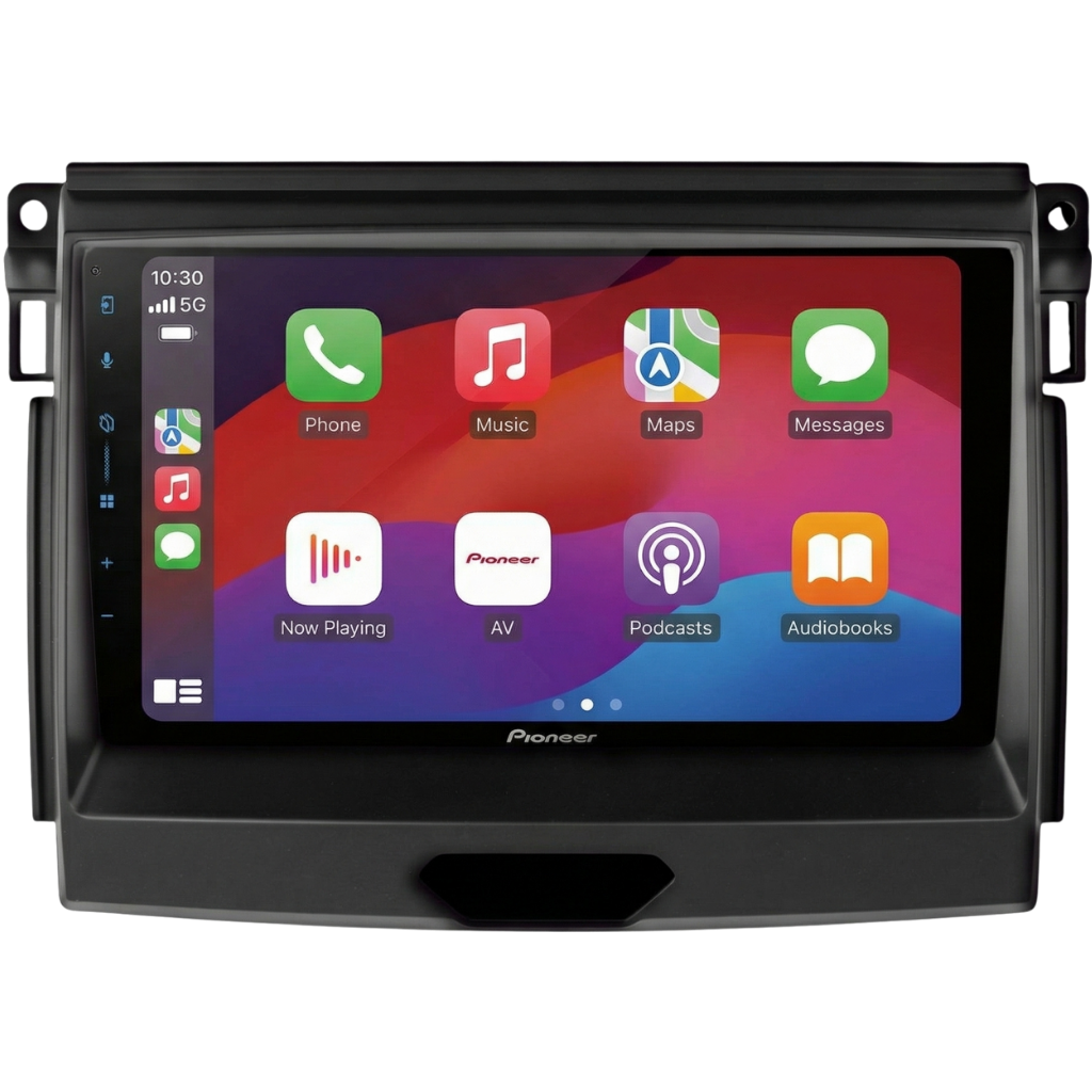 Pioneer SPH-F97BT 9" Multimedia Systeem voor Ford Ranger (2015–2018), inclusief autospecifieke bekabeling en stuurwielinterface (24-pins Ford connector; OK/spraakknop; origineel display; Sync niet compatibel; verlies tijd/datum/BC-informatie; parkeersensor-melding vereist; niet voor Sync-8" of klimaatregeling-op-scherm; inclusief antenne- en USB-adapter; CarPlay/AA via originele USB mogelijk niet compatibel; dashboardfoto vereist).