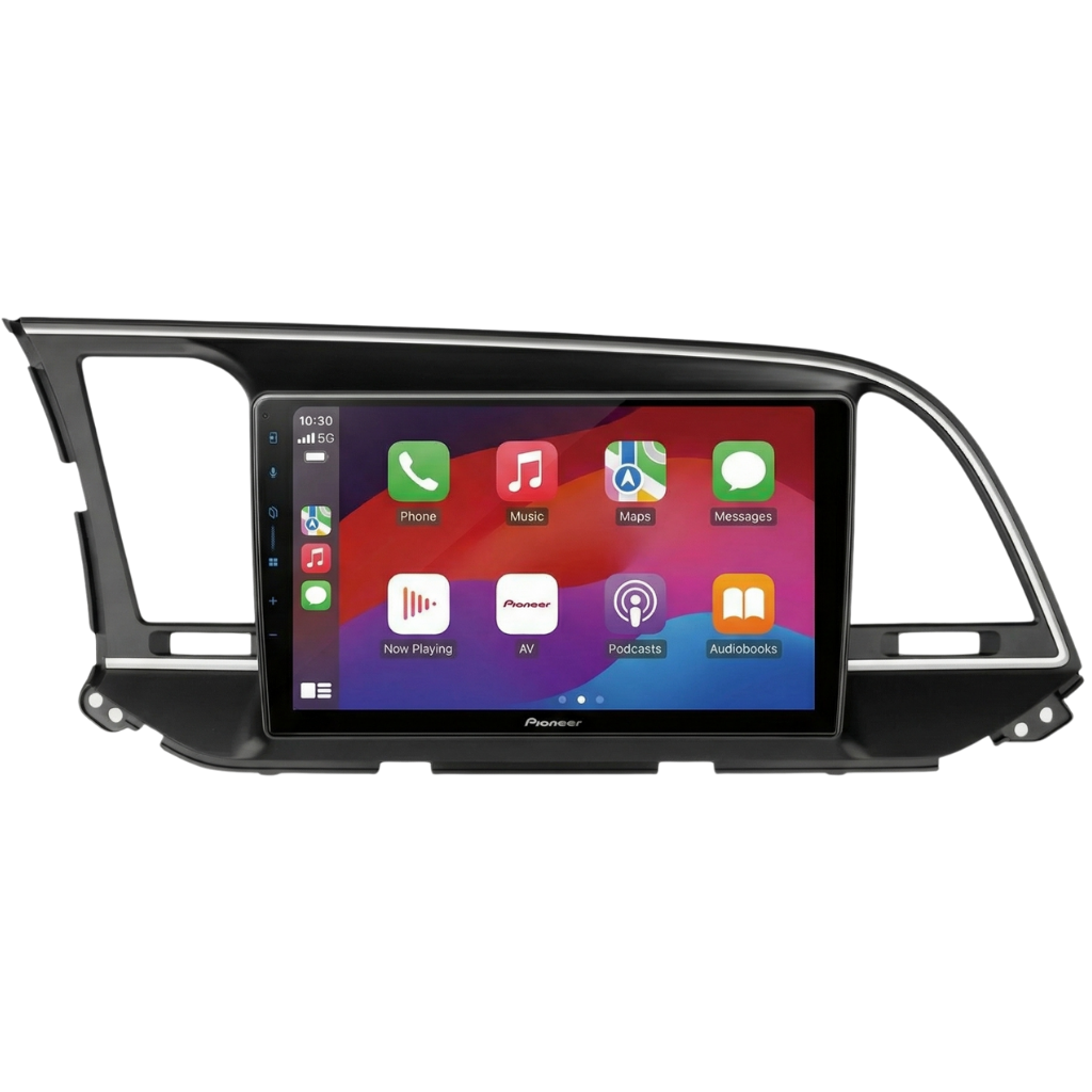 Pioneer SPH-F97BT 9" Multimedia Systeem voor Hyundai Elantra (2016–), zwart/zilver, inclusief autospecifieke bekabeling en stuurwielinterface.
