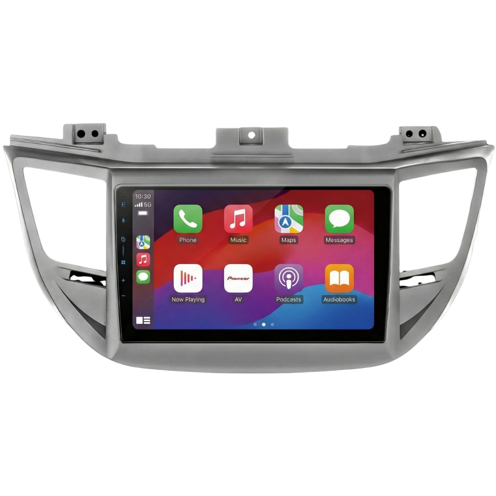 Complete installatiekit, geschikt voor de Hyundai Tucson ('15-), bestaande uit het 9'' Pioneer SPH-PF97BT Multimedia Systeem en een voertuigspecifiek 9'' Montageframe in de kleur Zilver, inclusief bekabeling en stuurwielinterface.