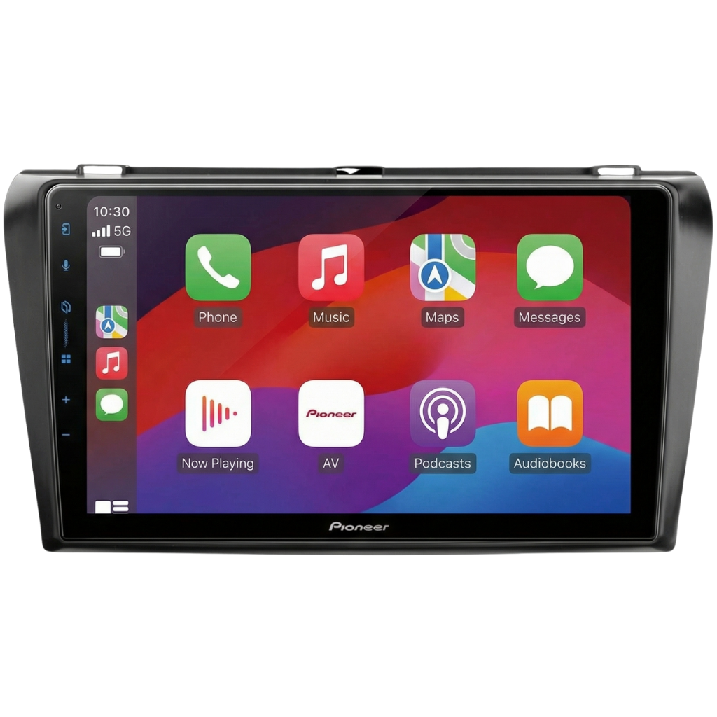 Complete installatiekit, bestaande uit het Pioneer SPH-PF97BT Multimedia Systeem en een voertuigspecifiek 9" Montageframe (Zwart) voor de Mazda 3 ('06-'09), inclusief Bekabeling en Stuurwielinterface.