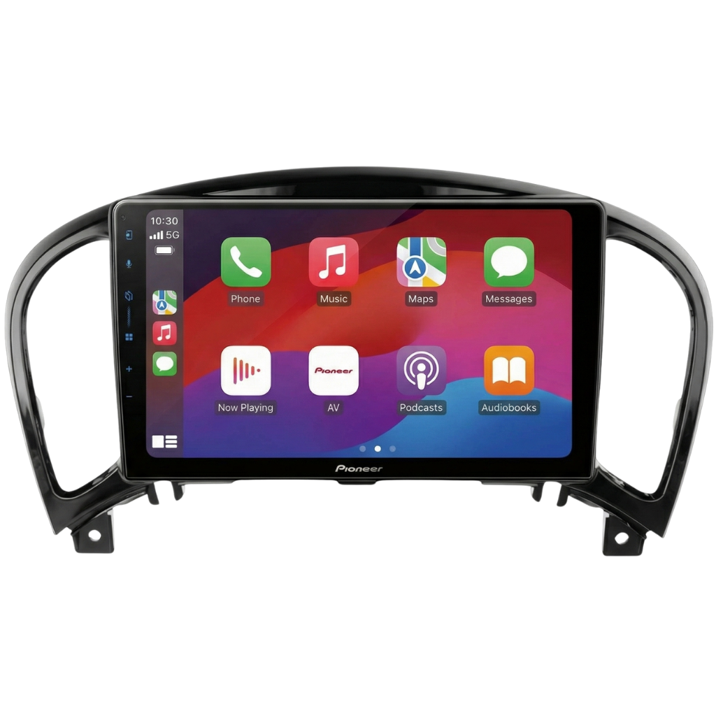 Complete installatiekit bestaande uit het 9" Pioneer SPH-PF97BT Multimedia Systeem en een voertuigspecifiek 9" Montageframe (glanzend zwart), inclusief autospecifieke bekabeling, geschikt voor de Nissan Juke ('10-'14) modellen met af-fabriek 360 graden camera's.