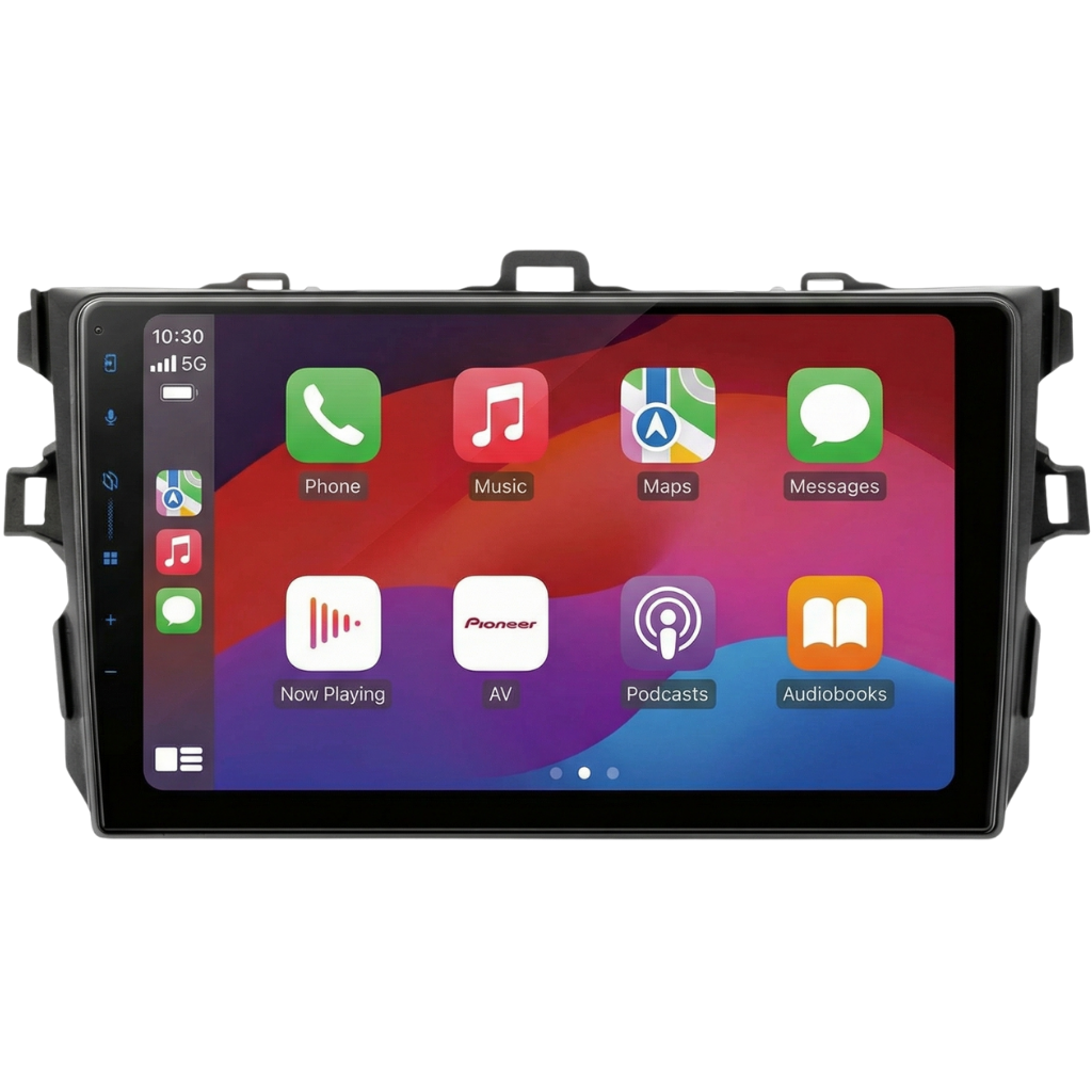 Pioneer SPH-F97BT 9" Multimedia Systeem voor Toyota Corolla Sedan (2007–2012), zilver, inclusief autospecifieke bekabeling en stuurwielinterface.