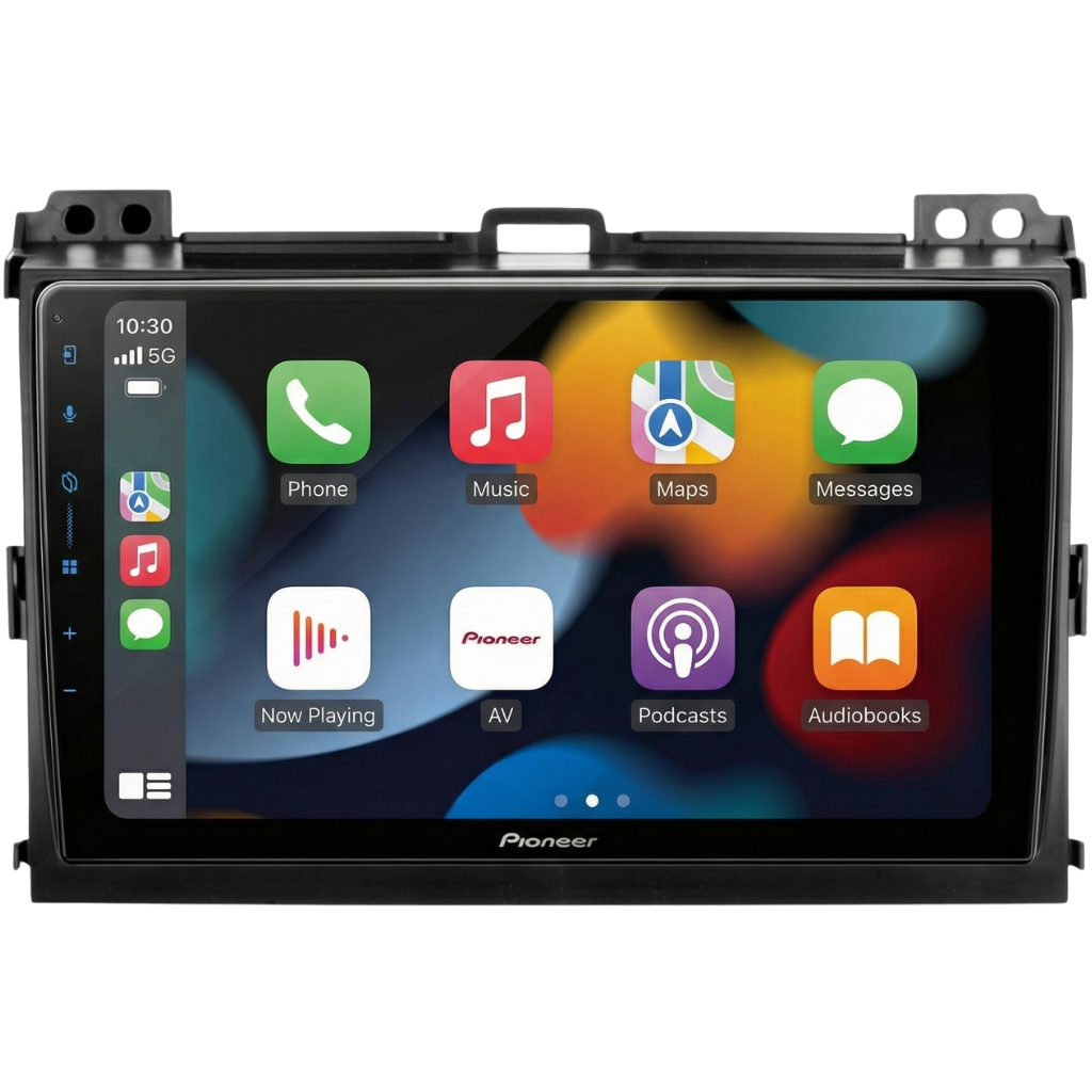 Complete installatiekit, bestaande uit het Pioneer SPH-PF97BT Multimedia Systeem en een voertuigspecifiek 9" Montageframe (Zwart) voor de Toyota Land Cruiser ('03-'09), inclusief bekabeling en stuurwielinterface.