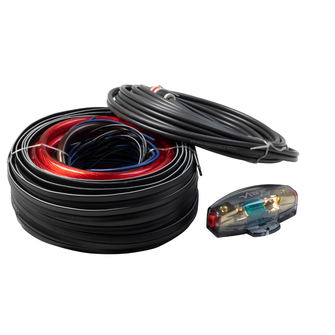 - 1x VSAWK4-V1 4 AWG Bekabelingskit (Stroom, Aarde, RCA, Speakerdraad, Zekeringhouder)